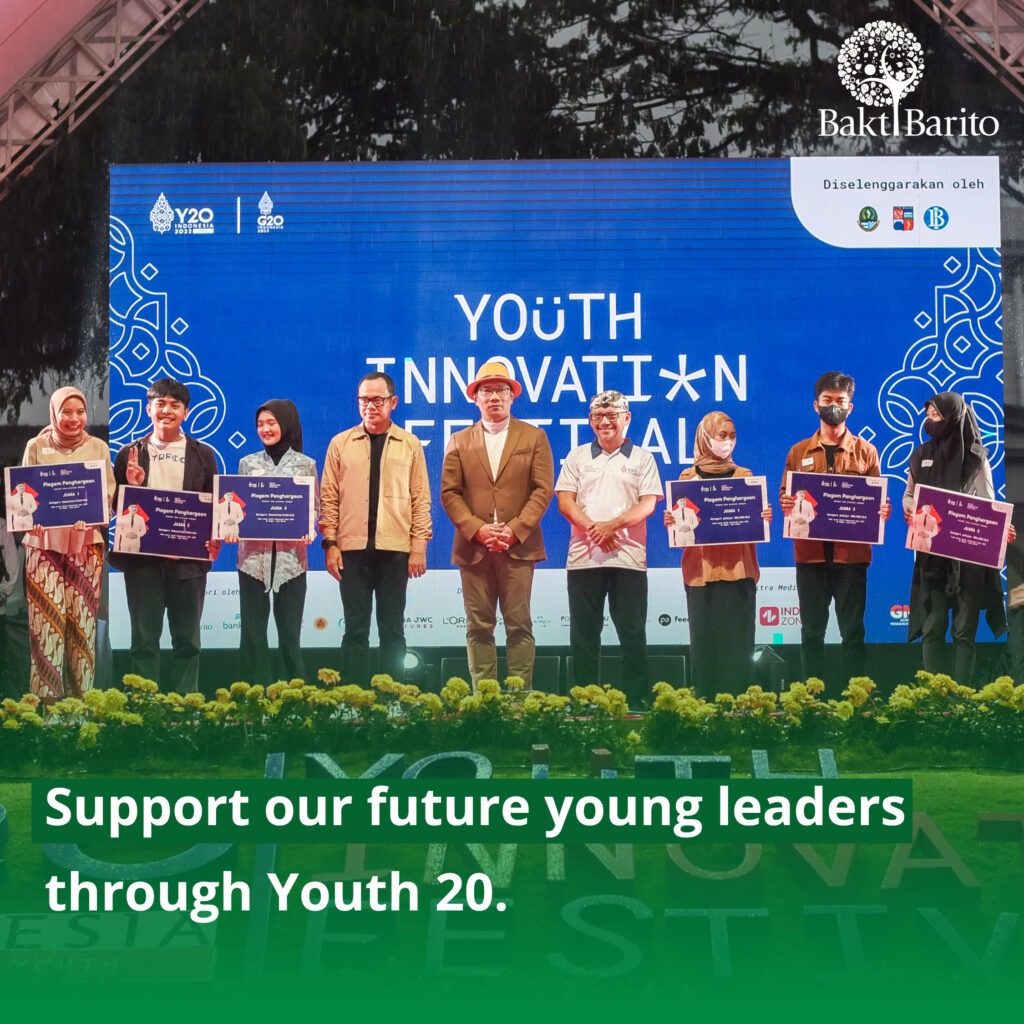 Bogor – Barito Pacific Group, through the philanthropic foundation Bakti Barito Foundation, provides support to the Youth Innovation Festival as a series of activities of the Youth 20 Summit (KTT Y20), which was held at Bogor City Square on Sunday (21/8). Youth 20 is a forum for future leaders from all G20 member countries to discuss, argue, and exchange ideas in order to reach a mutual agreement on pressing issues in the world in line with the agenda of the G20 Presidency.