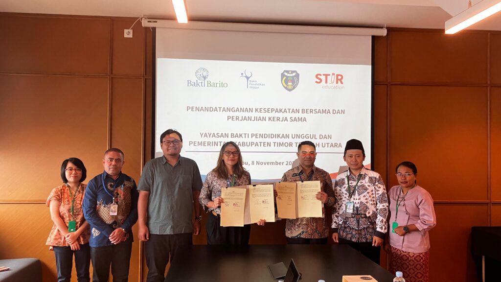 The MoU was signed on behalf of the regency by Beato Yosef Frent R. Omenu, S. STP, Head of Education and Culture Office of North Central Timor Regency. It was witnessed by Herdiana, Head of the Centre of Education Quality Assurance (BPMP), East Nusa Tenggara Province and Yoni Nurdiansyah, Executive Director of STiR Education. The MoU was also signed by Dian Anis Purbasari, Director of Bakti Barito Foundation through Yayasan Bakti Pendidikan Unggul (YBPU).