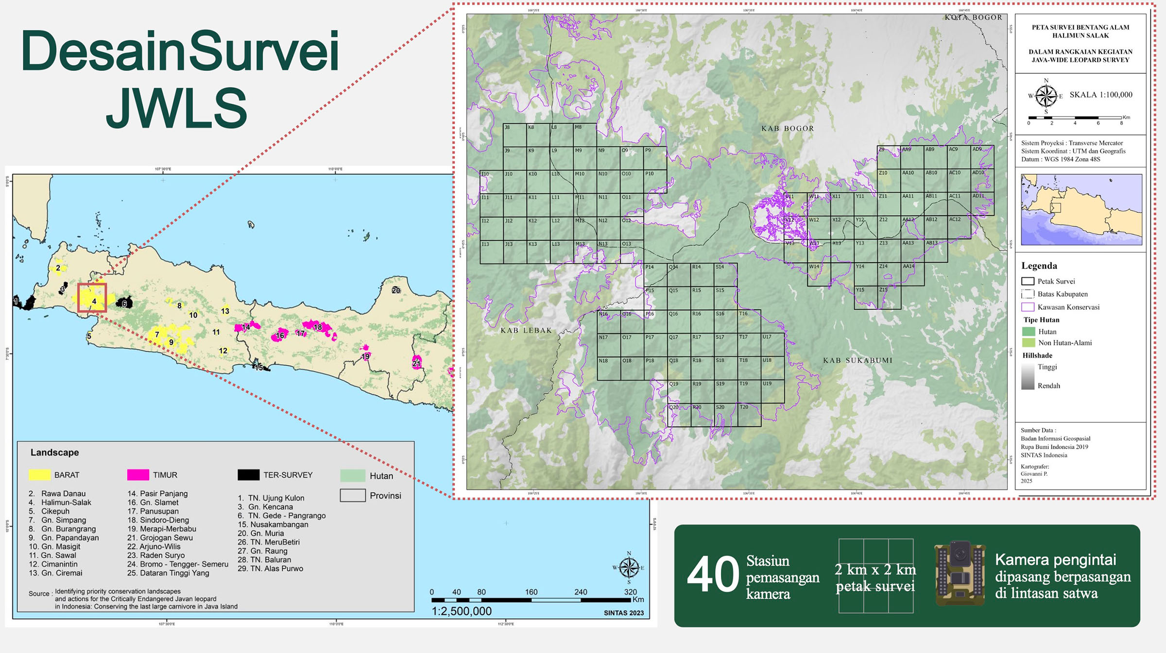 The Java-wide Leopard Survey (JWLS) is a national initiative headed by the Ministry of Environment and Forestry. This collective effort aims to monitor and map the population of the critically endangered Javan leopard (Panthera pardus melas) across its remaining habitats in Java. Using camera traps, field observations, and genetic mapping, the survey provides valuable data to support the evidence-based conservation of this elusive species.